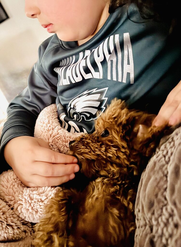 My grandson and my new puppy – the love that immediately showed itself between a little boy and a little dog is precious and gives me hope for the future: