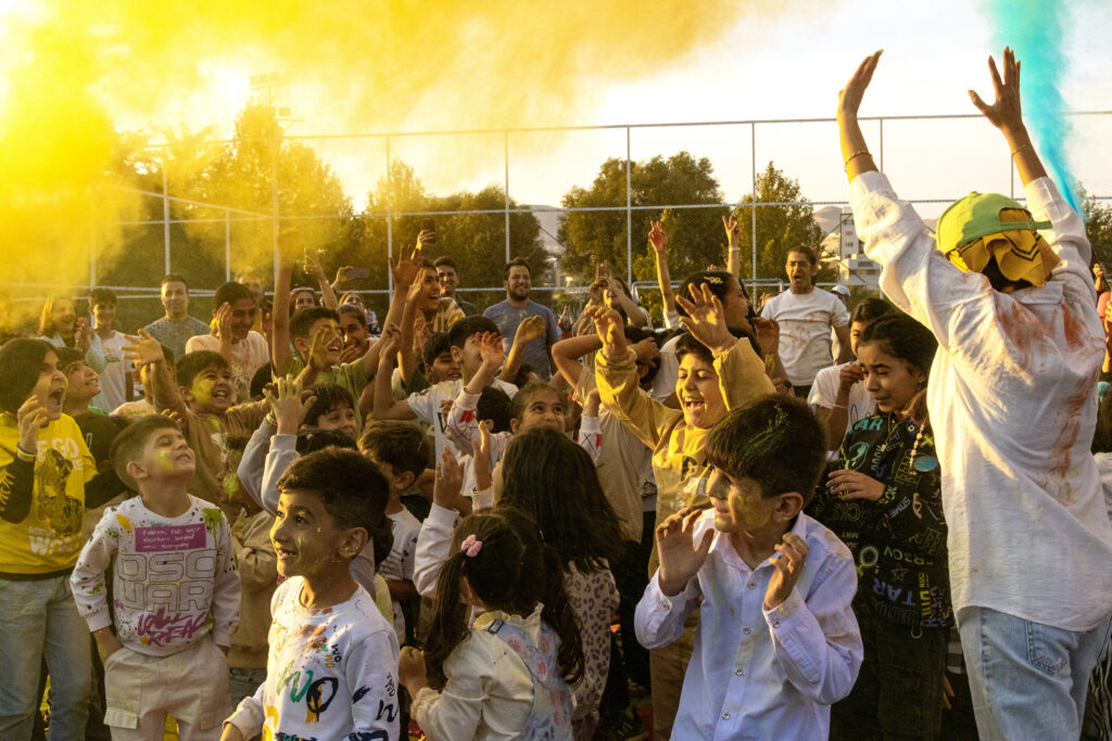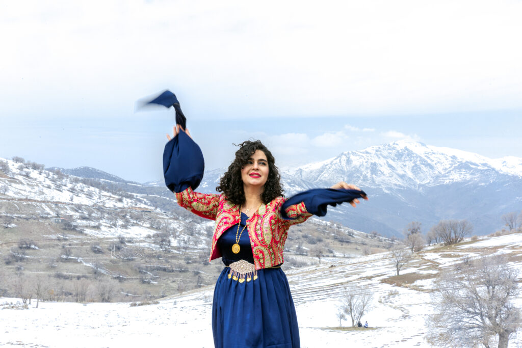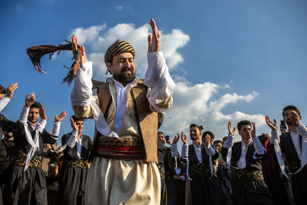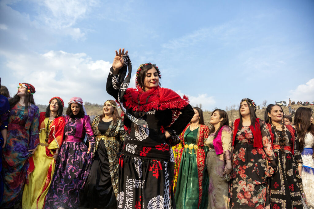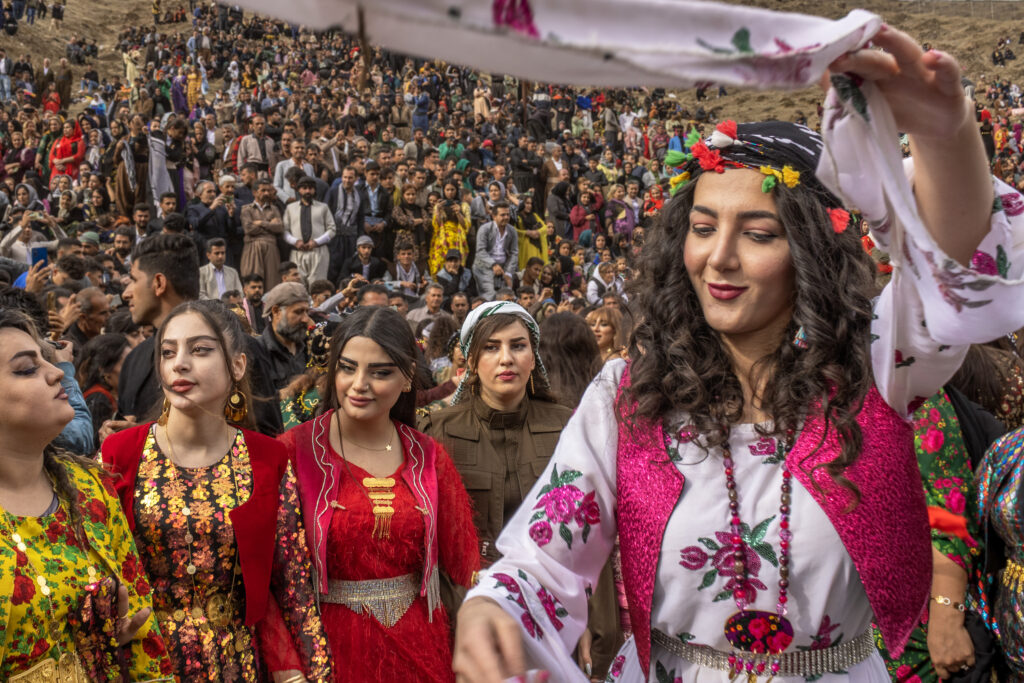A woman leads a circle of dancers during a Nowruz celebration, where color, movement, and shared rhythm turn tradition into collective happiness.