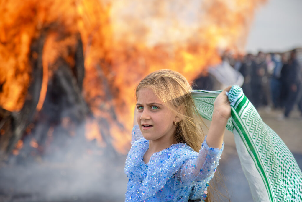 A young Kurdish horsewoman rides past a ceremonial fire, surrounded by a dense crowd during a traditional celebration. The flames rise beside her as she moves forward with calm focus and steady posture. The beauty in this moment is not softness — it is presence. It lives in courage, in balance between fire and control, […]