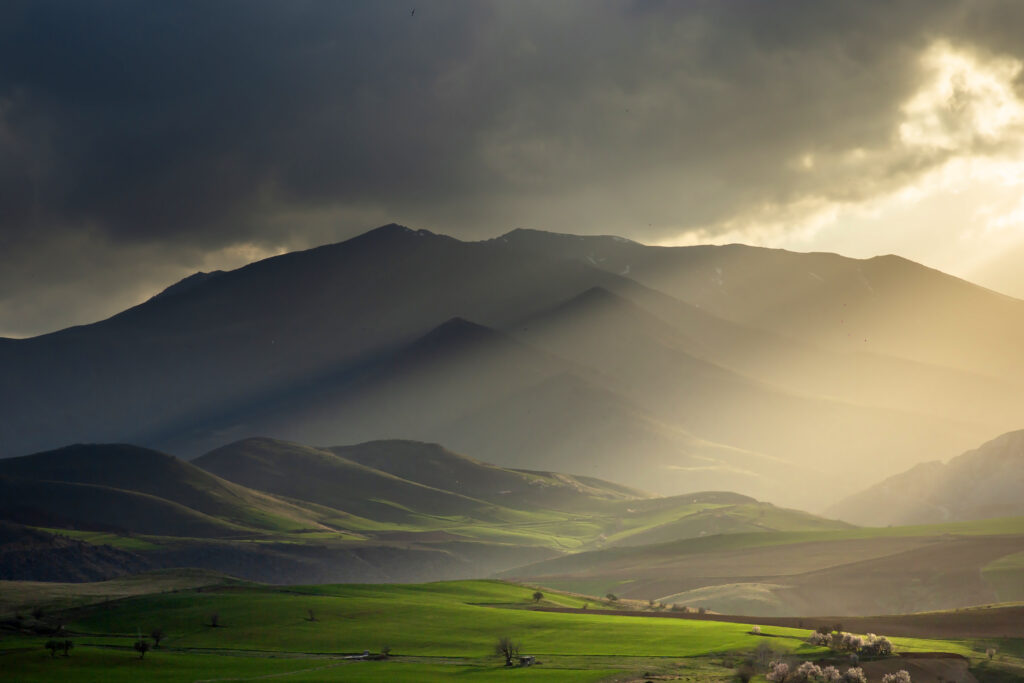 After a passing storm, sunlight breaks through heavy clouds and slowly moves across the mountains and fields. What was hidden in shadow becomes visible again — layers of land, quiet farms, and the first signs of spring green. This landscape reflects a moment of transition: from darkness to clarity, from uncertainty to calm. Beauty here […]