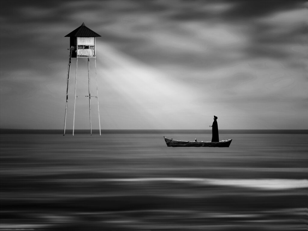 The river rises, the sky darkens, the city erodes into mist. Still, he looks ahead. Hope is not optimism it is defiance against uncertainty.