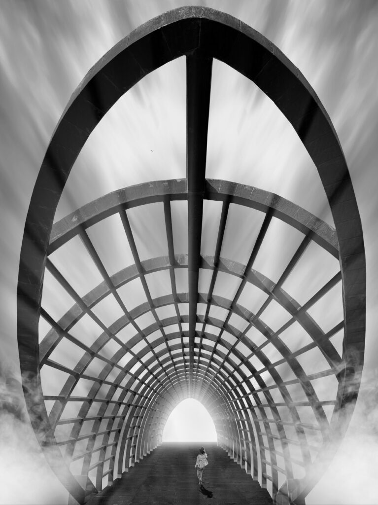 A stair suspended in emptiness, leading toward what cannot be seen. Hope is not in arrival, but in the decision to ascend.