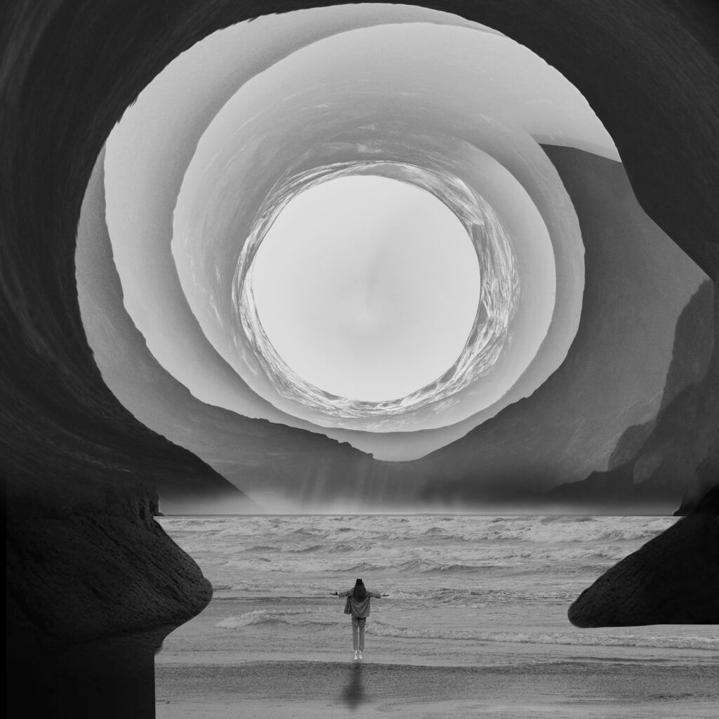 Time bends, and horizons are no longer straight paths toward certainty. At the point where the unseen begins, meaning is created by simply moving forward. Hope is not about seeing the path — but believing in the possibility of one.