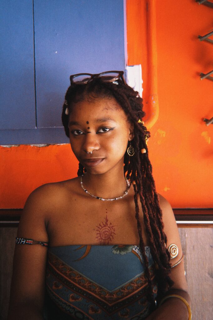 A moment where color, movement, and presence come together. Beauty appears not as something posed or performed, but as something lived— in flowing fabrics, shared rhythms, and the quiet confidence of women in motion. This image holds a fleeting joy, shaped by tradition, community, and the freedom of being seen.