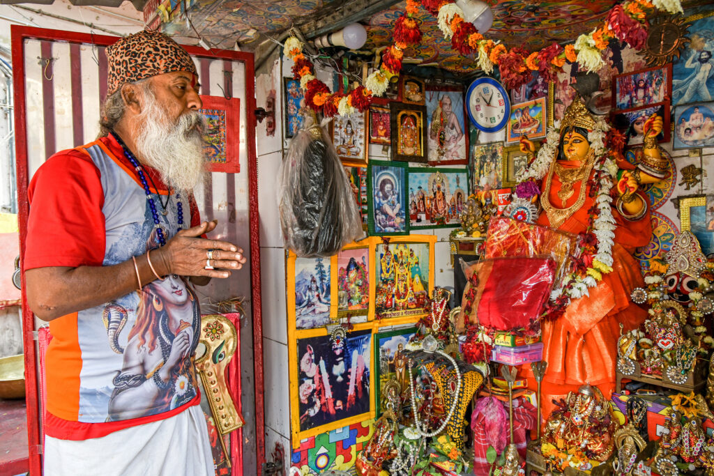 In a modest roadside temple, a devotee stands with folded hands before the vibrant presence of the goddess. Surrounded by marigold garlands, framed deities, and the intimate clutter of faith carried through everyday life, his expression is calm and deeply centered. The outside world may be restless, but within this small sacred space, there is […]