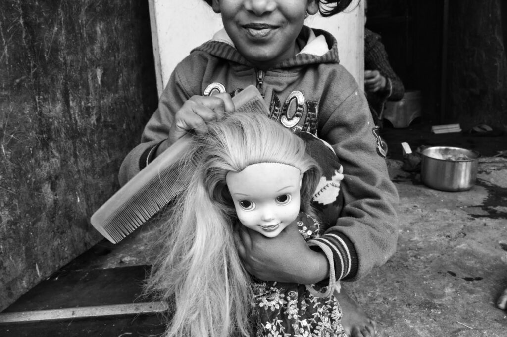 In a modest doorway, a child smiles while carefully combing her doll’s hair. There is no grandeur here only imagination, care, and play. Happiness doesn’t require abundance. Sometimes, it lives in small hands and simple moments.